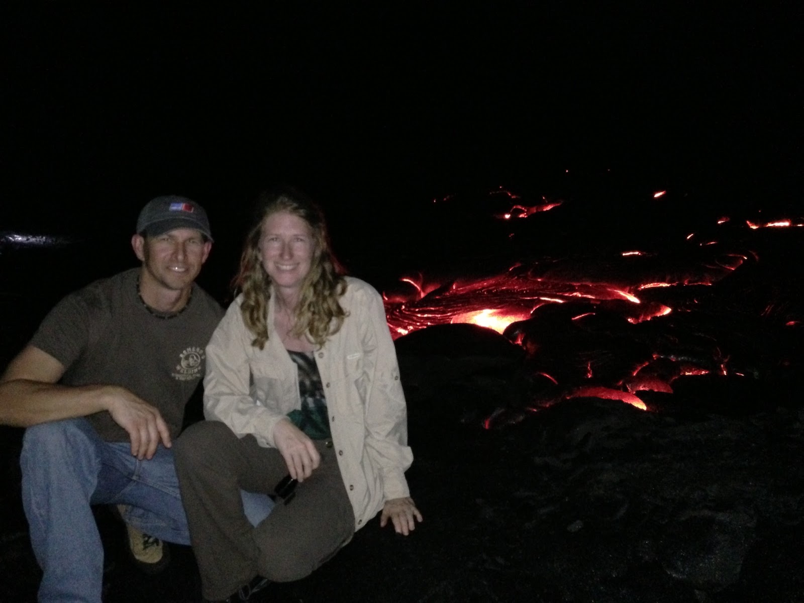 Been a while since I’ve posted, but we have still been working away on details, big and small, on the interior of KamaHele. We have slowed our pace of work to a more reasonable speed which was an absolute necessity once we got moved on board. Three plus years of pushing ourselves so hard on this project was certainly wearing us out, and not something we could reasonably sustain forever. It’s nice to get back to a slightly more normal lifestyle (whatever that means). With the boat back in her slip for the winter, all our necessary personal stuff moved onboard, and the basic comforts taken care of (heat, lighting, electrical, domestic water – both hot & cold, etc.), and the cold and rain of winter upon us, we have mostly been working on interior fit-out and finish work, as well as tying up loose ends left over from our rush to get the boat launched last September. After we brought the boat home, we took another trip up to Vallejo and back to receive a load of diesel fuel via truck. This was a good follow up shake-down cruise of about 70 miles or so, and I was able to get our auto pilot dialed in and play around with fuel consumption at different speeds. The biggest project we then tackled was plumbing, wiring and commissioning of the diesel furnace which supplies both heat and domestic hot water. Welcome luxuries… This a hydronic system in which coolant is heated by a small diesel fired burner, then circulated throughout the boat via pex tubing. Each heating zone has a small fan-coil heater unit fed with heated coolant, and thermostat to turn it on and off. I took the extra step of fabricating a copper shutoff manifold with an air bleed at each heater inlet and outlet. With this set-up you can bleed air out of the coolant plumbing anywhere in the system, and the shutoffs allow us to isolate individual heater units for service without having to deal with draining coolant from the plumbing. This definitely added some complication to the install but will pay off down the line when things needs service. In all, we have five zones with six heaters and a big 10,000 btu defroster fan in the wheelhouse overhead for the forward windows. So far the system works very well and seems fairly efficient. Last week, we installed the forward head so we now have two functional toilets onboard. This is a great improvement as the head in the aft cabin has no door yet. Our solution to this was to shout “door” whenever we needed to use the toilet, at which point whoever was in bed would pull the covers over their head to afford some privacy to the one using the facilities. With the second toilet installed up forward, there are far fewer calls of “door” these days. We also completed the propane stove install. The galley is completely functional and now I’m mostly just doing the final trim work in this area. Storage is our biggest concern now… I’ll be concentrating on cabinets, shelves, and cubby holes next so we don’t have to live out of cardboard boxes and bins. Don’t have a lot of current detailed photos, but here’s a few, along with a couple of pics from Hawaii that have nothing to do with boats. Hiked out on the volcano to see lava, poked it with a stick. Last is a picture of a nice winter sunrise through the aft head portlight. Nice to be home.